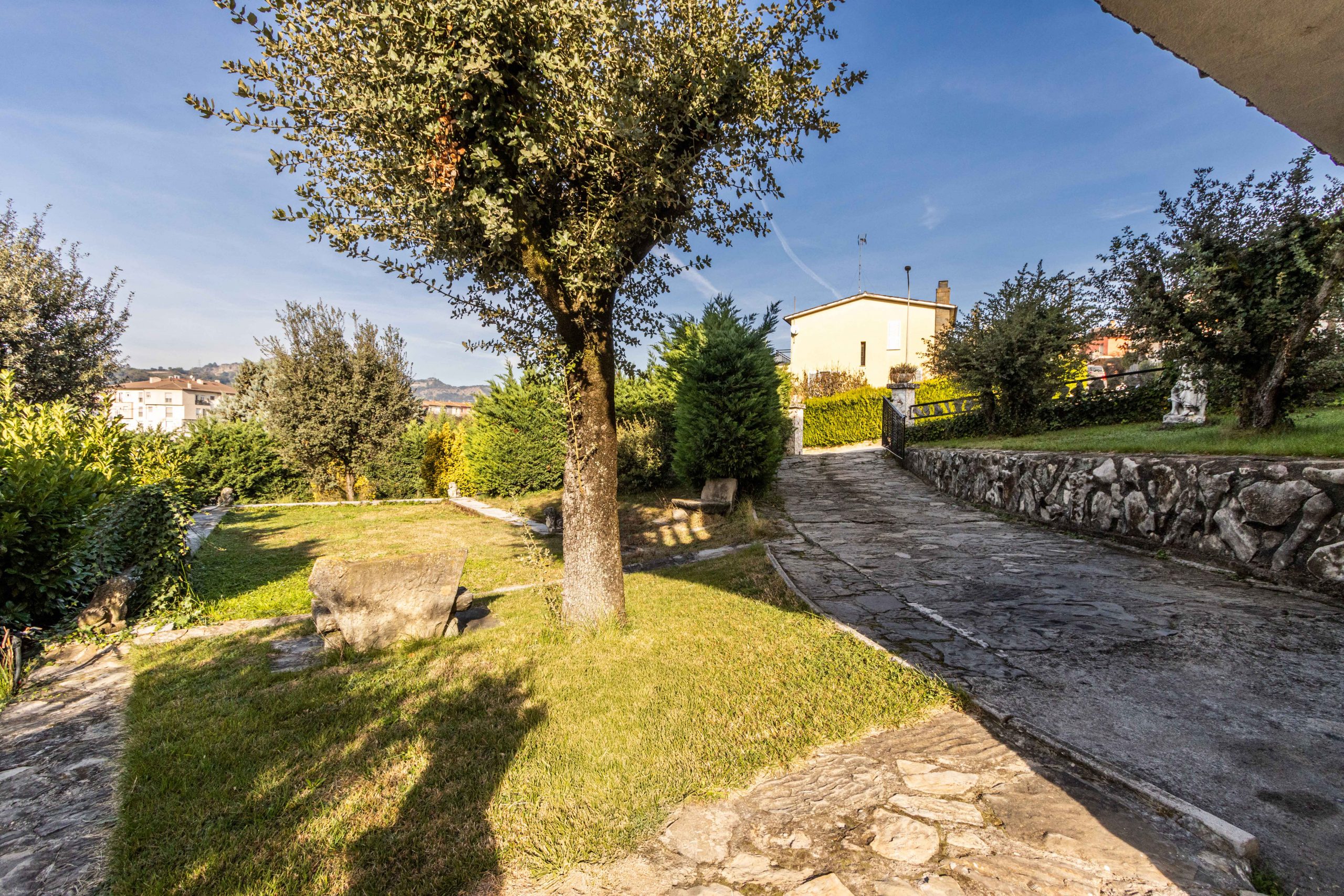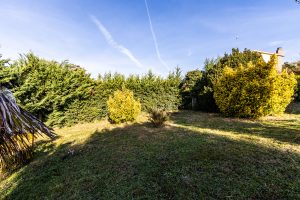 El Potencial del Agua: En el jardín, el antiguo vaso de piscina, ahora relleno de tierra, es una emocionante oportunidad. Puedes soñar con devolverle el agua o, simplemente, disfrutar de un vasto jardín virgen, un lienzo a la espera de un nuevo paisajismo.